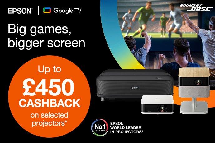 Get up to £450 cashback when you buy a selected Epson projector between 01.05.2026 and 31.07.2026